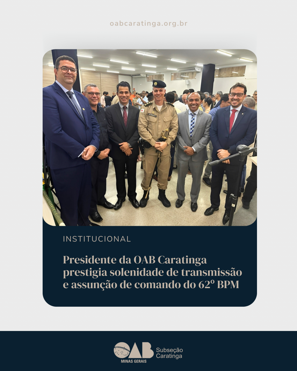 Presidente da OAB Caratinga prestigia solenidade de transmissão e assunção de comando do 62º BPM
