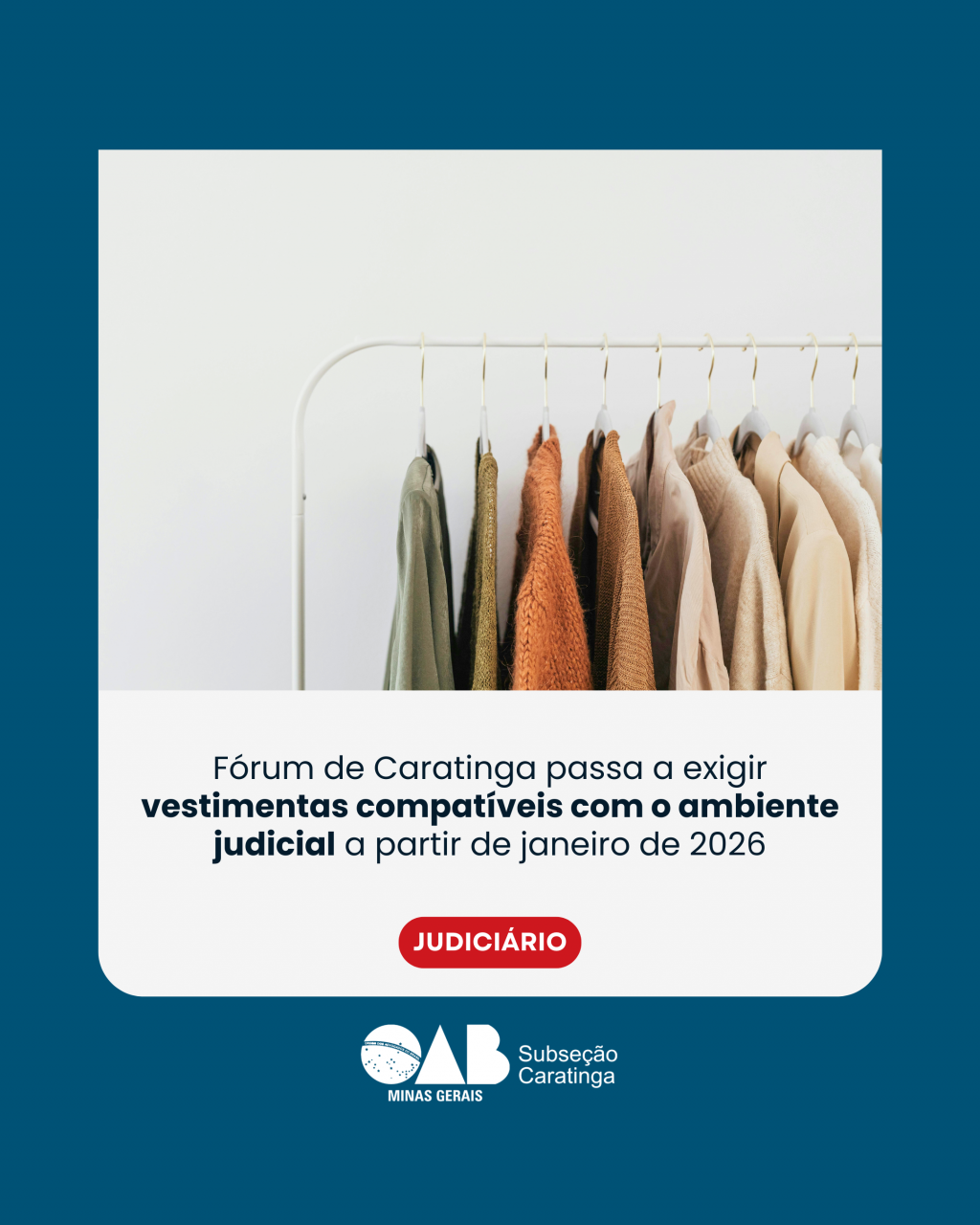 A Direção do Foro da Comarca de Caratinga/MG encaminhou à OAB Caratinga comunicado informando sobre a adoção de critérios mais rigorosos quanto às vestimentas para ingresso nas dependências do Fórum, com base na Portaria nº 788/2018 do TJMG e em orientações do Conselho Nacional de Justiça (CNJ).